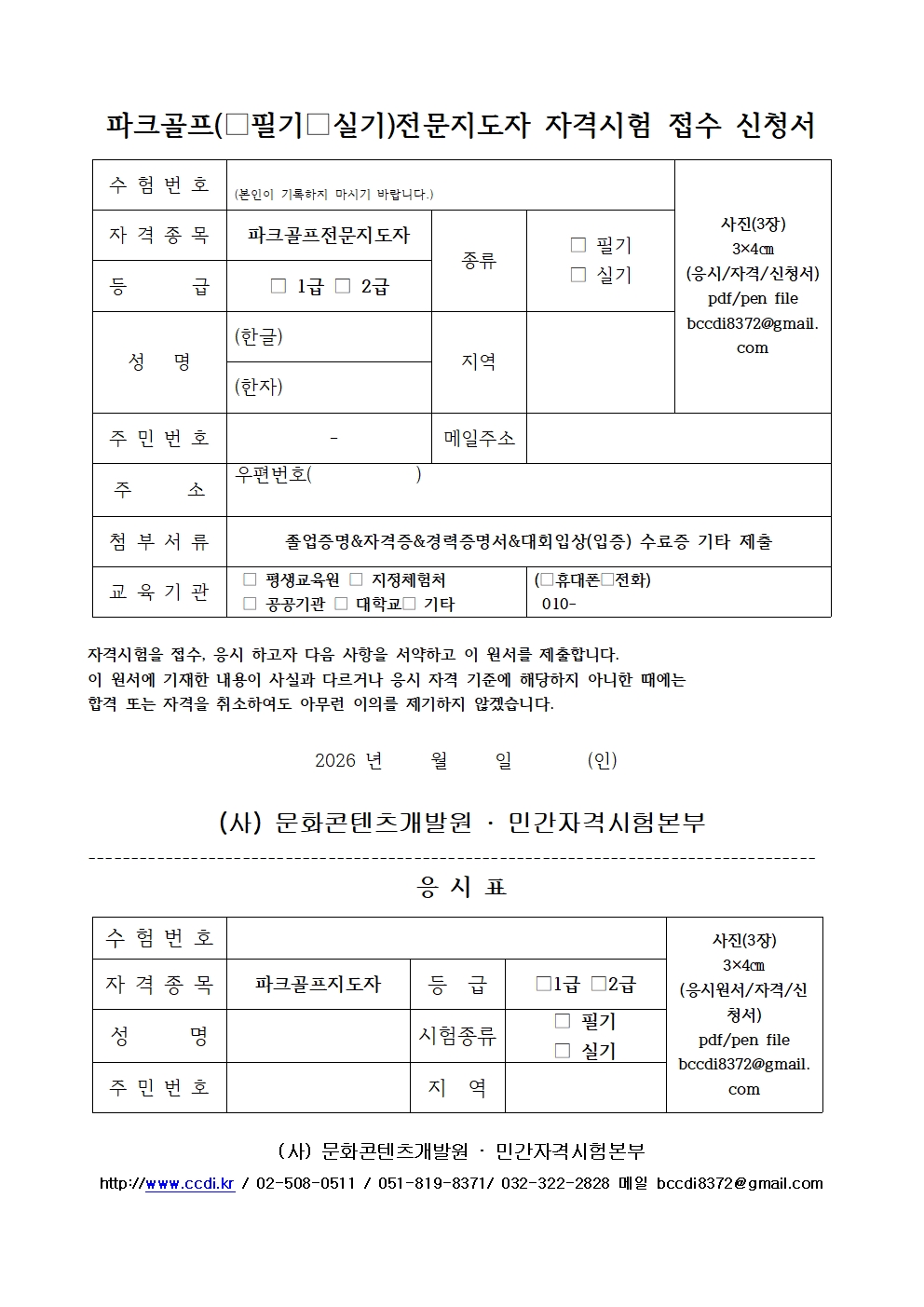 [자격검정/사회교육원 20260314] 파크골프(필기&실기)전문지도자 자격시험 접수 신청서