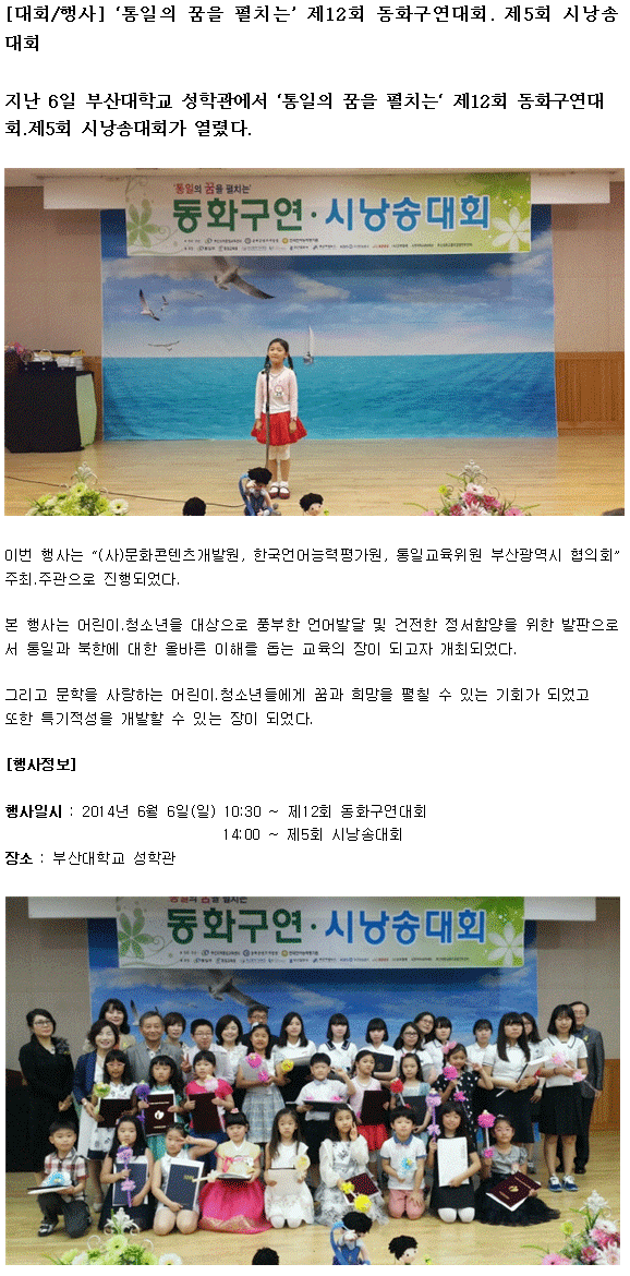 [대회/행사] "통일의 꿈을 펼치는" 제12회 동화구연대회.제5회 시낭송대회