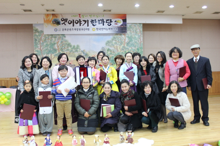 지난 21일 "부산대학교 성학관 101호"에서 "제6회 옛이야기 한마당" 대회가 (사)문화콘텐츠개발원, 한국언어능력평가원 주최.주관으로 개최되었다.[대회정보] ○ 대회일자 : 2014년 12월 21일 일요일 17:00 ○ 장 소 : 부산대학교 성학관 101호 ○ 주관·주최 : (사)문화콘텐츠개발원·한국언어능력평가원 ○ 후 원 : 부산대학교윤리경영전략센터