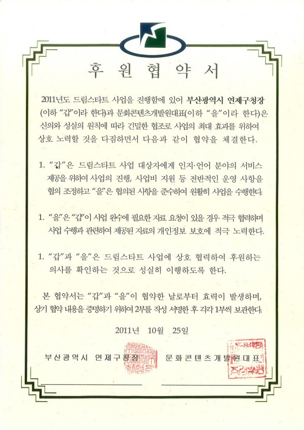 2011 연제구청 드림스타트 협약서