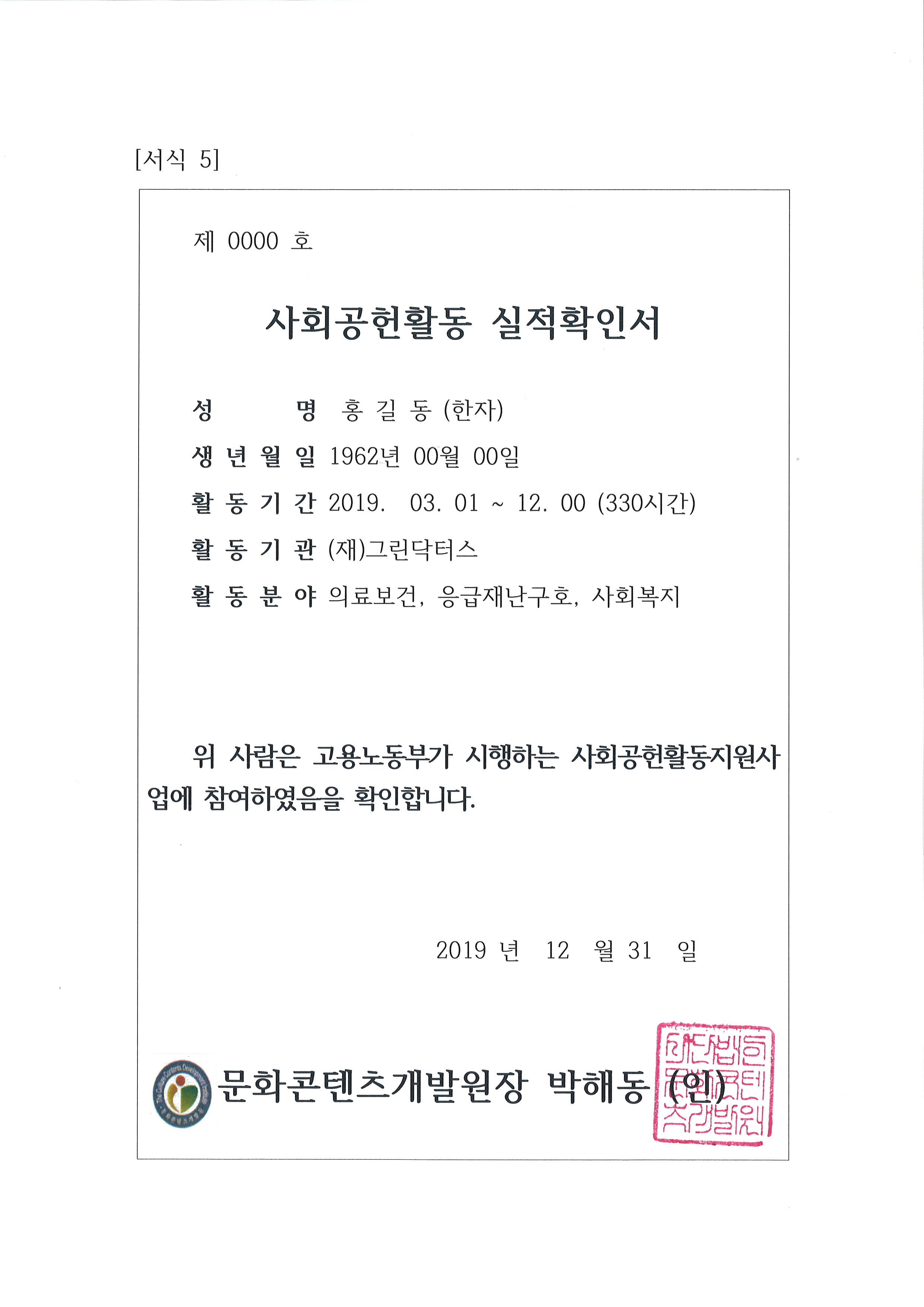 사회공헌활동 전문실적증명서 발급 / 역량강화교육 개인 카카오스토리 구축