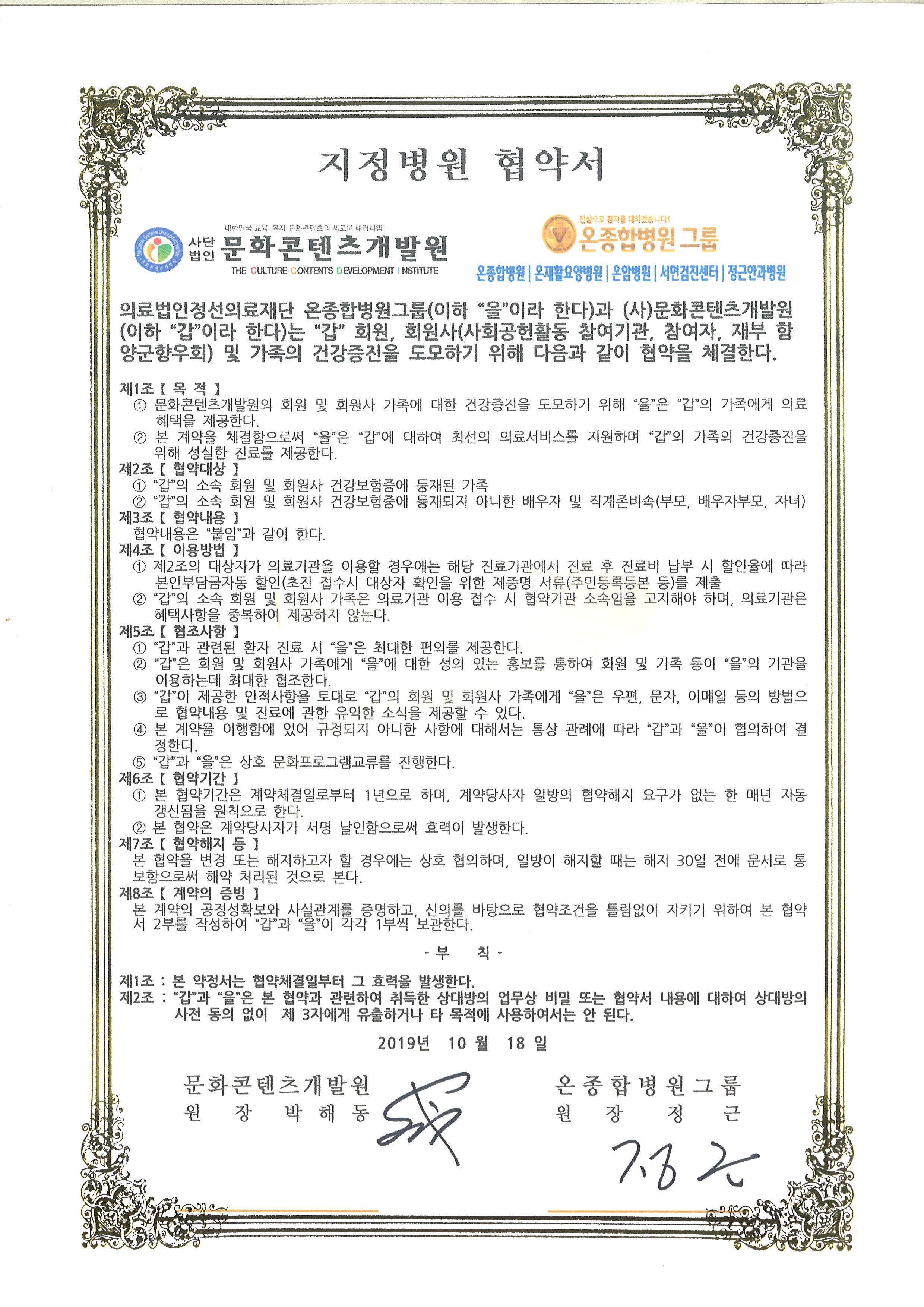 [공지] 온-종합병원그룹 사회공헌활동 참여자 참여기관 및 관련 지정병원 협약식