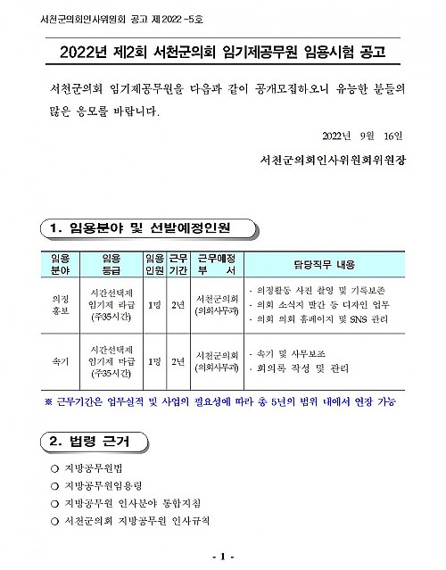 [뉴스/취업정보] 서천군의회 속기사 채용공고