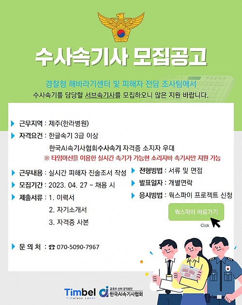 [뉴스/취업정보] 경찰청 해바라기센터 수사속기사 모집(제주) 채용공고