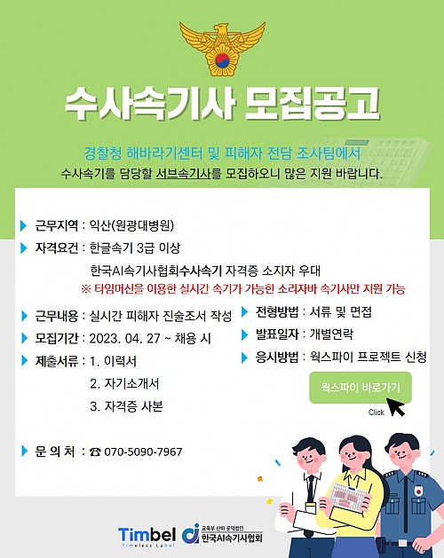 [뉴스/취업정보] 경찰청 해바라기센터 수사속기사 모집(익산) 채용공고