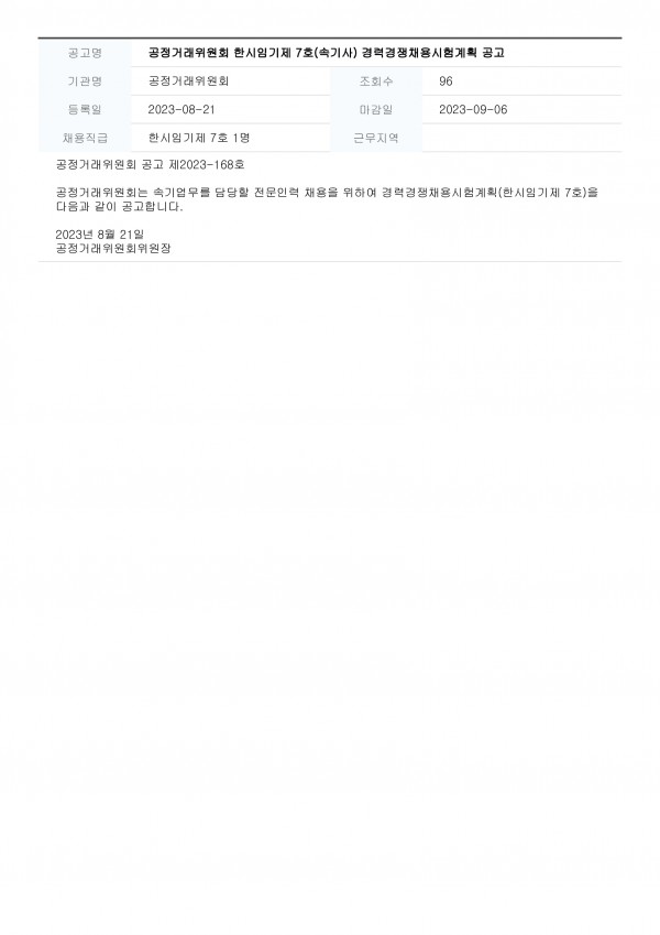 공정거래위원회 한시임기제 7호속기사 경력경쟁채용시험계획 공고.pdf (72.6K)