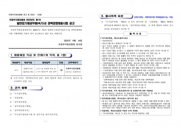 [뉴스/취업정보] 의정부지방검찰청 2023년도 제1차 일반임기제공무원(속기사) 경력경쟁채용공고 (~8/25)