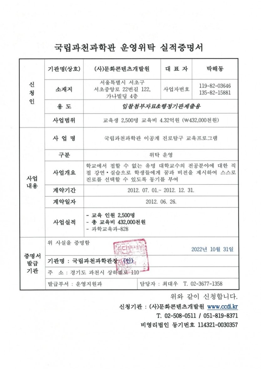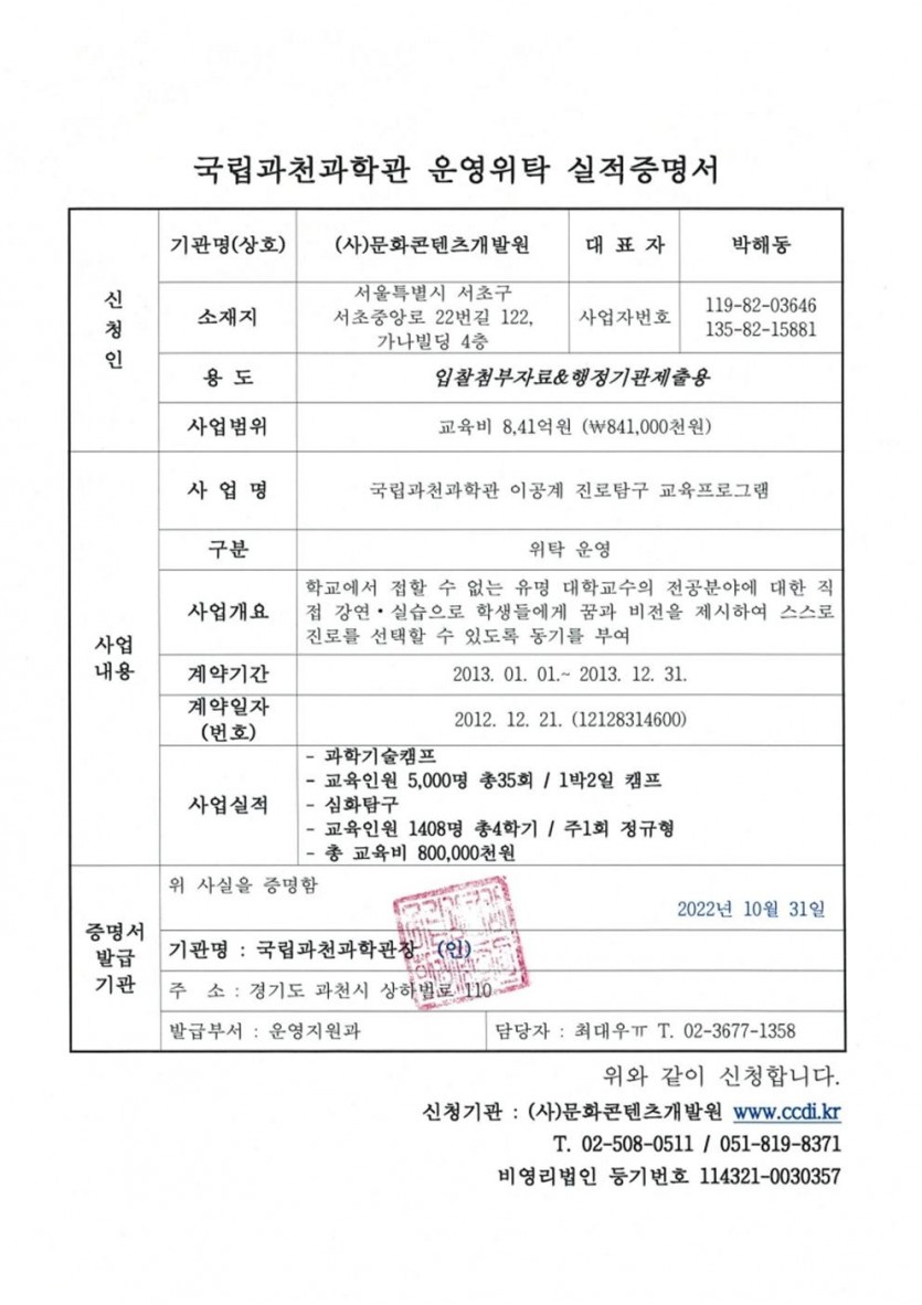1. 사업명 : 이공계 진로탐구 교육프로그램