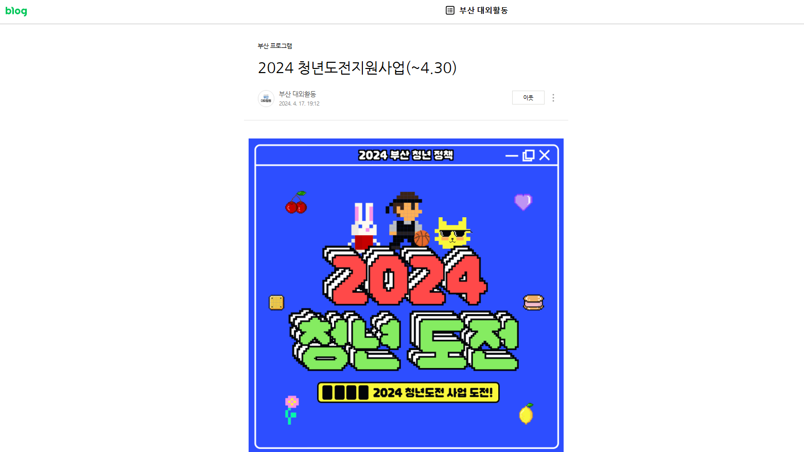 2024 청년도전지원사업(~4.30) : 네이버 블로그 (naver.com)