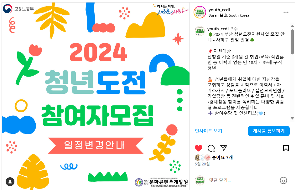 [24-05-20] [인스타그램_홍보] 2024 부산 청년도전지원사업 모집 안내 -사하구