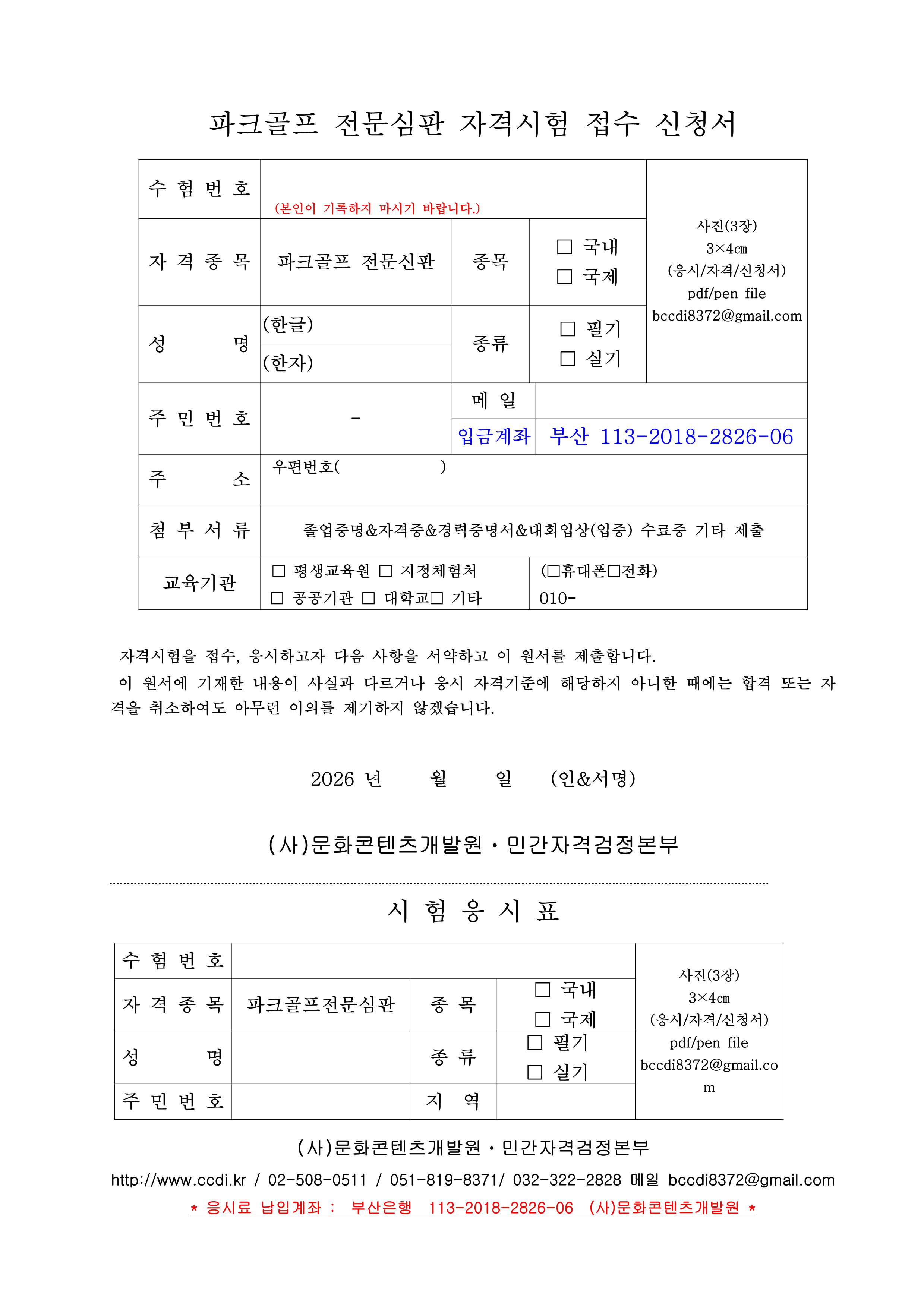 [자격검정&사회교육원-20260314] 파크골프 전문심판(국내&국제) 자격시험 접수 신청서