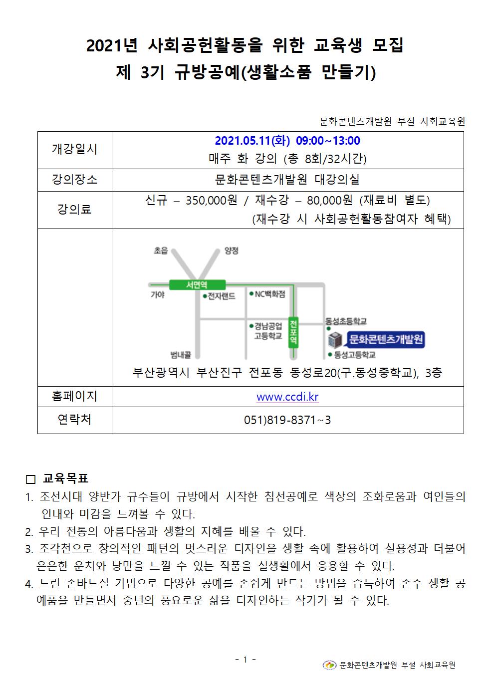 ※ 문의사항 : 문화콘텐츠개발원 평생교육원 051-819-8373