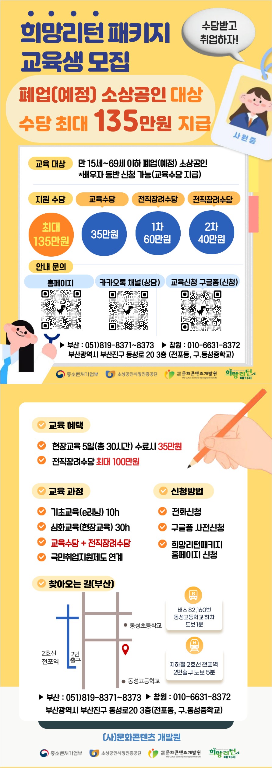 [중소벤처기업부&소상공인진흥공단]희망리턴패키지 교육생모집(폐업&예정)소상공인 대상 135만원 지원(부산,창원,서울,경기)