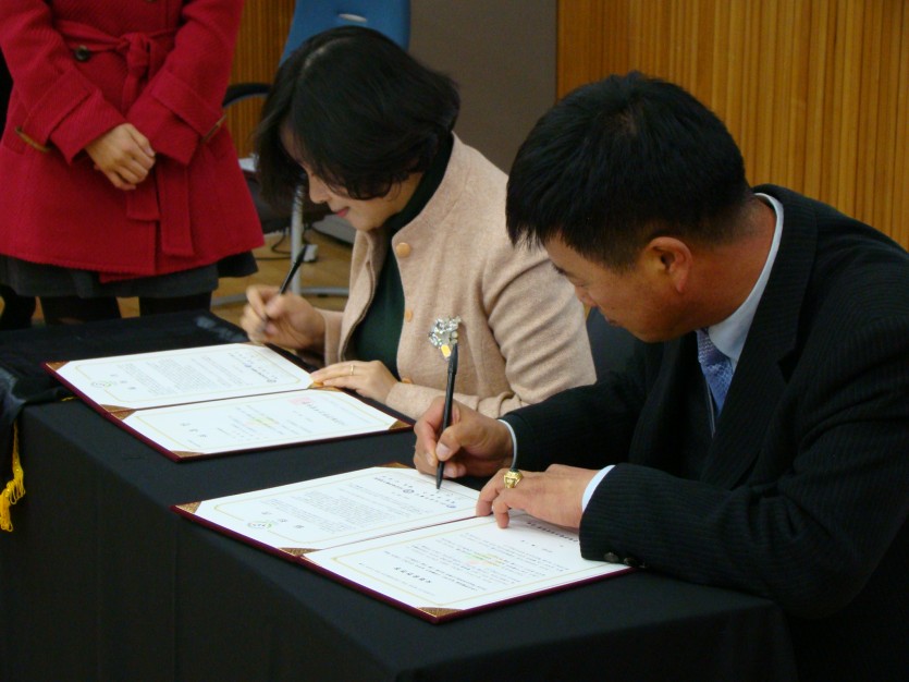 <사진1 각 기관의 대표가 서명을 하고 있다>