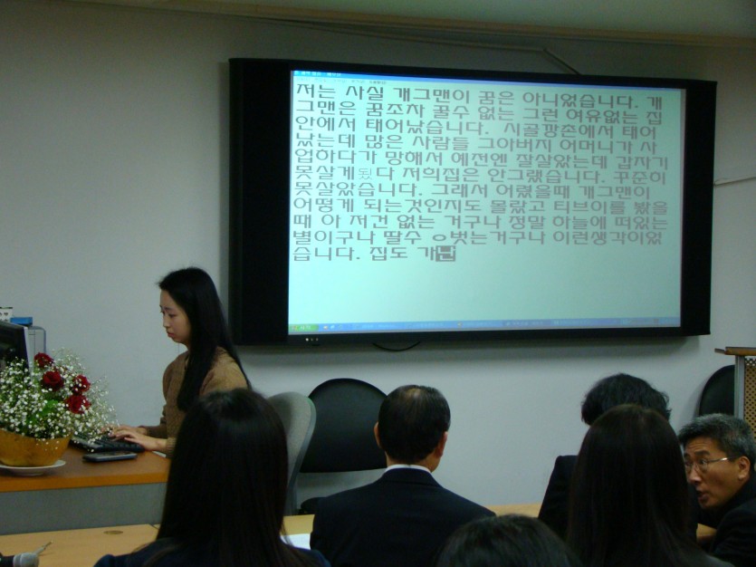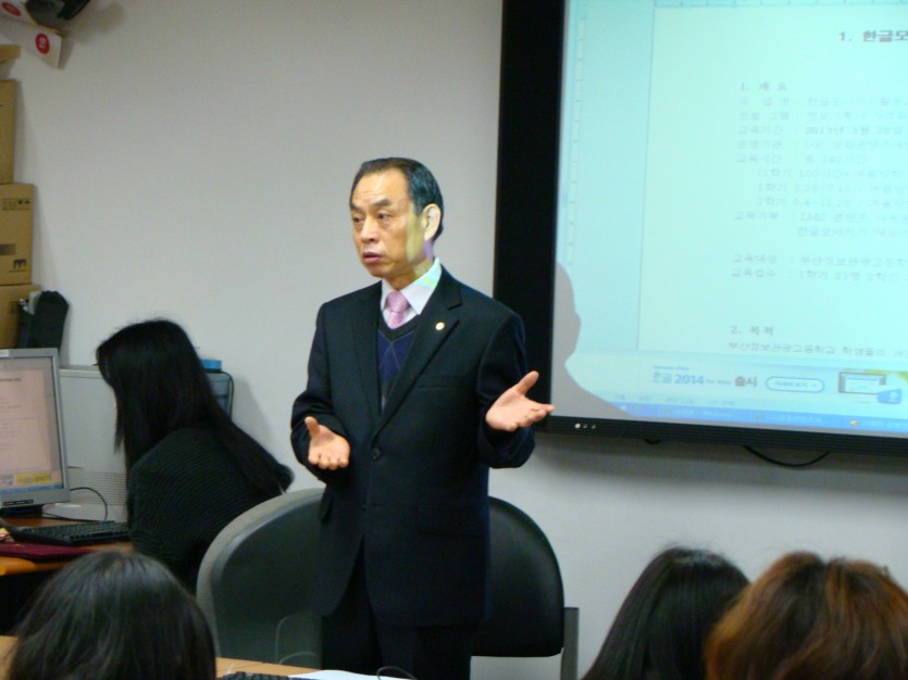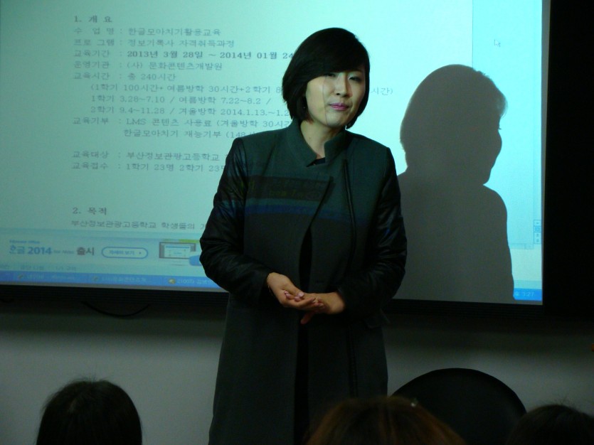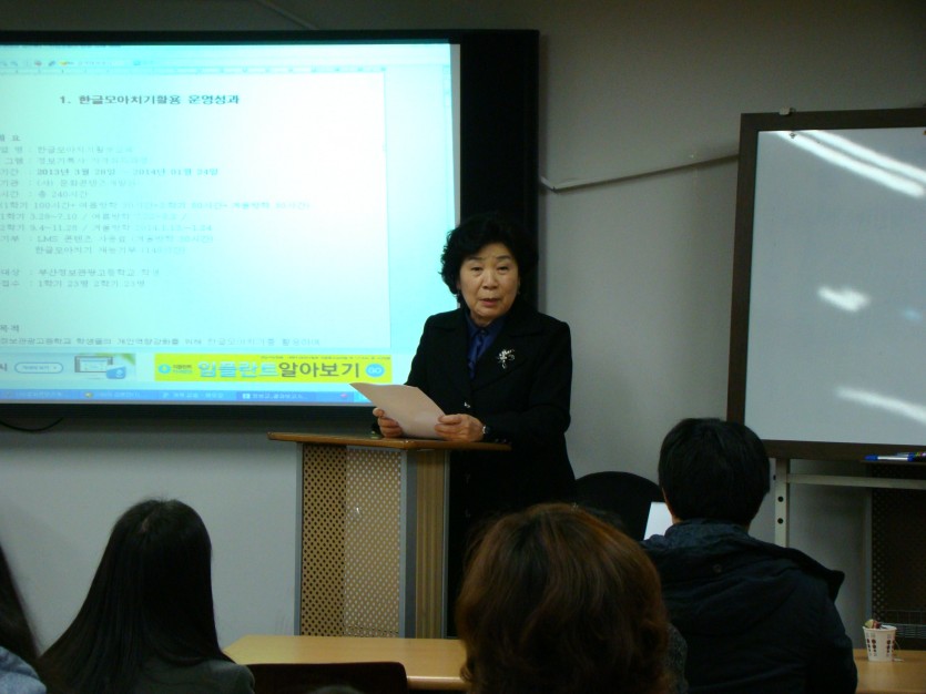 부산정보고등학교 장유진 학생의 한글모아치기 시연, 자격증 수여식, 동아대학교 이진규 교수,