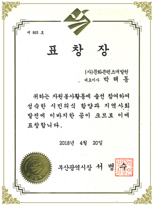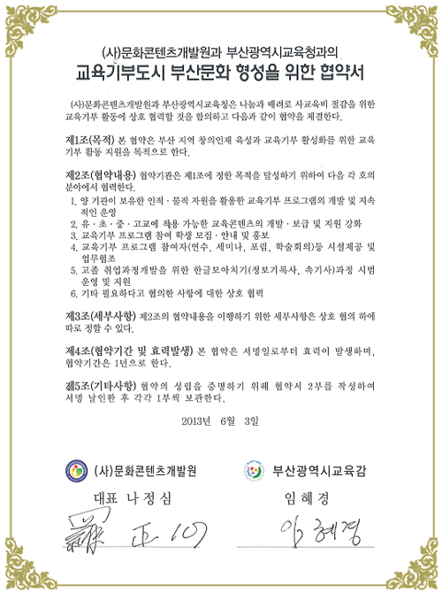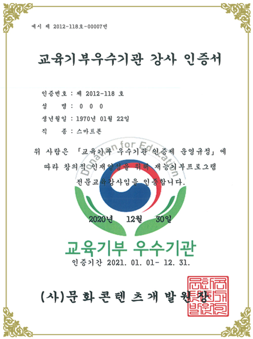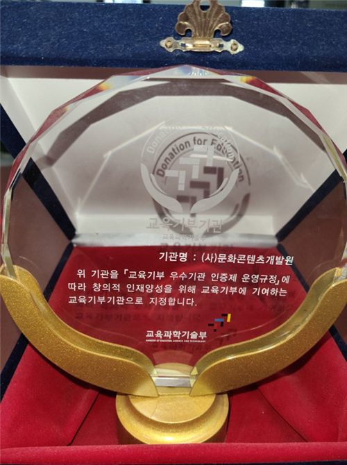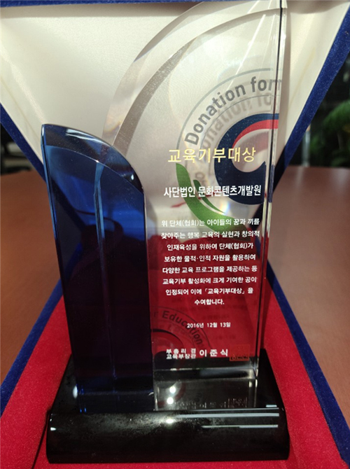교육부 교육기부 우수기관 지정서 및 패·표창장